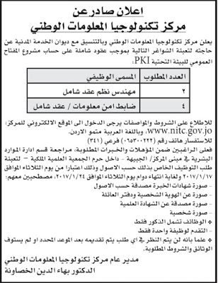 فرص مميزة للعمل لدى مركز تكنولوجيا المعلومات الوطني تصفّح المقالات Leading IT Company has the following Vacancy to be located at Amman مطلوب مدخلين بيانات من كلا الجنسين لدى مؤسسة اغاثية