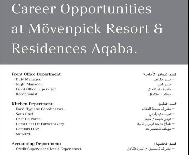 Career Opportunities at Movenpick Resort & Residences Aqaba.
