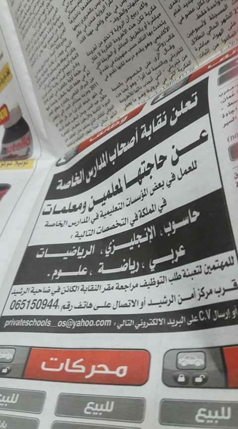 تعلن نقابة المدارس الخاصة عن حاجتها لمعلمين ومعلمات تصفّح المقالات اكثر من 4500 شاغر لدى مؤسسة لوجستية كبرى لا يهم الخبرة والمستوى التعلمي شركه صناعيه في المفرق بحاجه الى التخصصات التالية