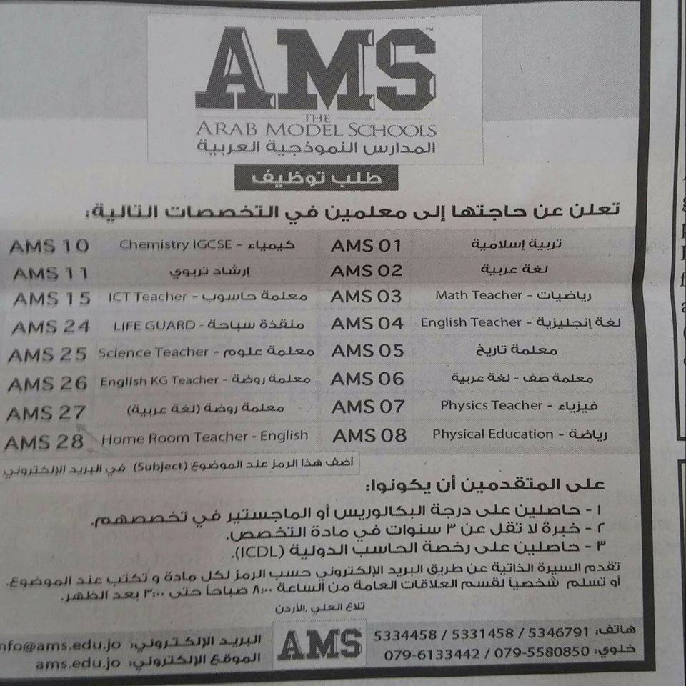 تعلن المدارس النموذجية العربية عن الحاجة الى معلمين ومعلمات كافة التخصصات