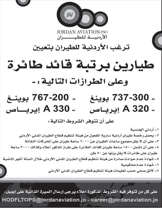وظائف شاغرة لدى الشركة الاردنية للطيران