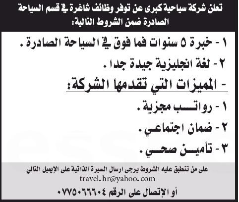 وظائف شاغرة لدى شركة سياحة كبرى رواتب مجزية تأمين وضمان تصفّح المقالات وظائف شاغرة لدى شركة smart step براتب 350 دينار وظائف شاغرة لدى شركة صناعية كبرى