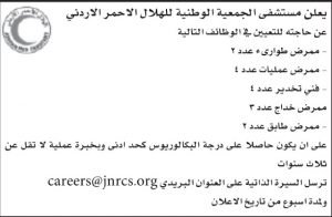 15 وظيفة شاغرة في الهلال الاحمر الاردني – لمزيد من المعلومات اضغط هنا تصفّح المقالات يعلن مستشفى عبدالهادي بحاجه لتعيين في الوظائف التالية – التقديم لكلا الجنسين محطة محروقات مرموقة في عمان تطلب كادر موظفين للعمل لديها