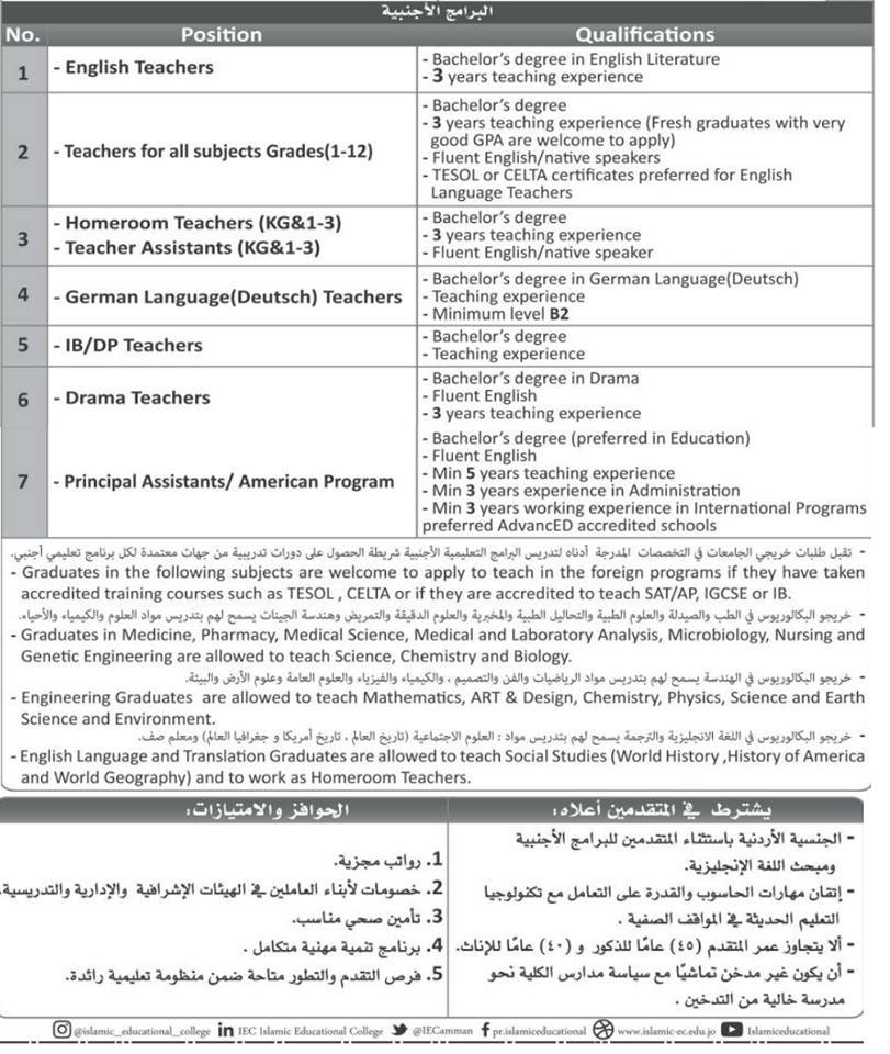 وظائف شاغرة لدى مدارس الكلية العلمية الاسلامية في التخصصات التالية تصفّح المقالات مطلوب سائق للعمل لدى شركة هندسية كبرى وظائف شاغرة لدى المدرسة النموذجية في التخصصات التالية