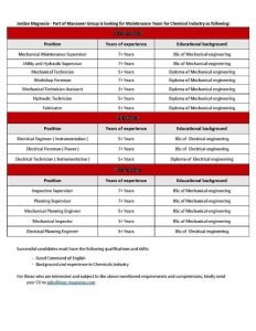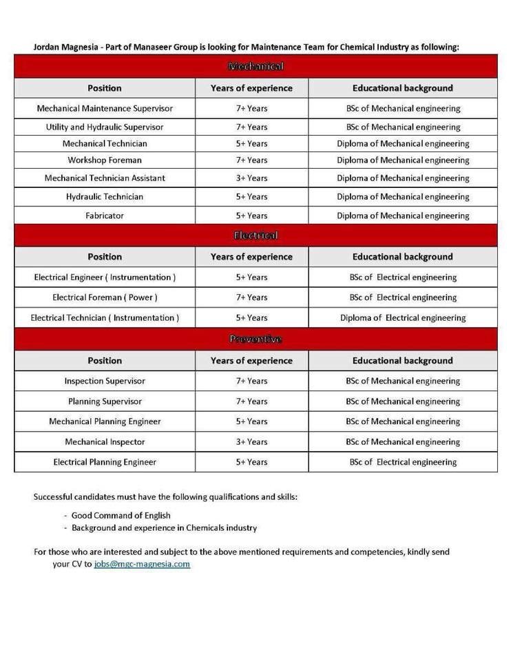وظائف شاغرة لدى مجموعة المناصير مطلوب للعمل في مجموعة المناصير عدة وظائف للمهندسين jobs@mgc-magnesia.com تصفّح المقالات وظائف شاغرة لدى نقابة المهندسين مطلوب مهندس كهربائي