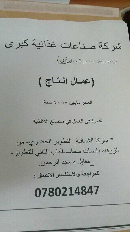 شركة صناعات غذائية كبرى ترغب بتعيين عدد من الموظفين “فورا “ تصفّح المقالات تعلن مدارس الحصاد عن توفر شواغر لجميع التخصصات الإدارية والأكاديمية والمهن أيضا “لمعرفة المزيد “ مطلوب