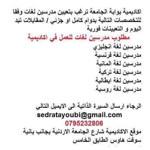 تصفّح المقالات مدرسة خاصة في عمان تعلن عن رغبتها في استقطاب كفاءات تعليمية من معلمين ومعلمات في جميع التخصصات بما فيه معلمات تربية خاصة ومشرف اداري ومرشدة اجتماعية للعام الدراسي 2018/2019 مطلوب موظفين من كلا الجنسين