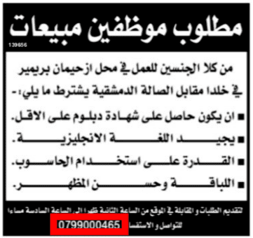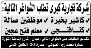 تصفّح المقالات إعلانات الوسيط “مطلوب محاسبين من كلا الجنسين “للتفاصيل وظائف شاغرة منوعة في صحف اليوم “2”