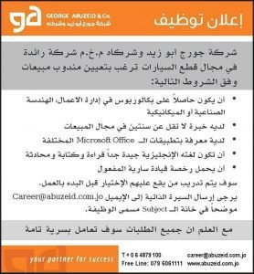 وظائف شاغرة لدى شركة جورج ابو زيد تصفّح المقالات مطلوب موظفين لدى شركة امارتية مقرها في عمان براتب 550 دينار مرحب بحديثي التخرج وظائف شاغرة لدة شركة جديده في الاردن في عدة تخصصات