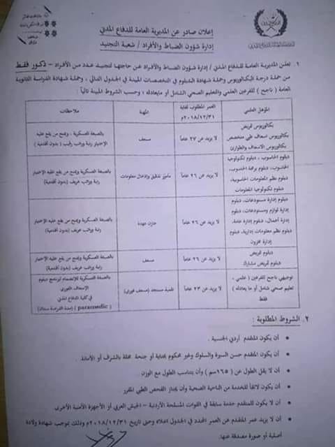 اعلان تجنيد دفاع مدني بكالوريوس ودبلوم وتوجيهي ناجح (ذكور فقط) تصفّح المقالات وظائف شاغرة لدى منظمات انسانية كبرى وظائف شاغرة لدى دهانات ناشونال