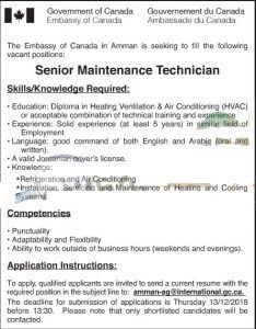 وظائف شاغرة لدى السفارة الكندية في الاردن