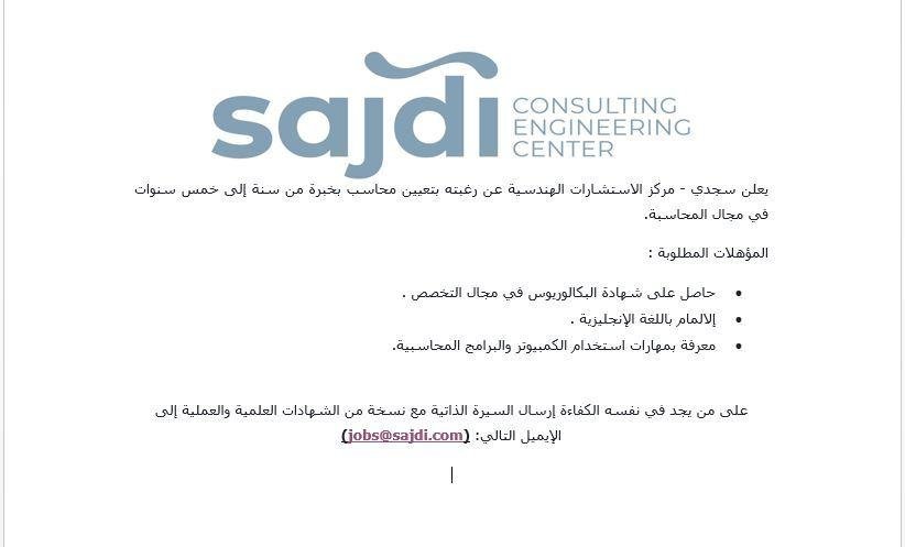 وظائف شاغرة لدى سجدى في قسم المحاسبة