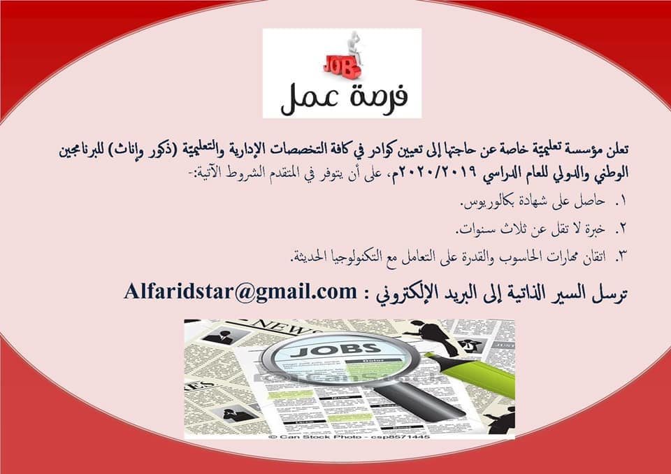 تعلن مؤسؤسة تعليمية كبرى عن حاجتها لكادر تعليمي كامل-التفاصيل في الاعلان: