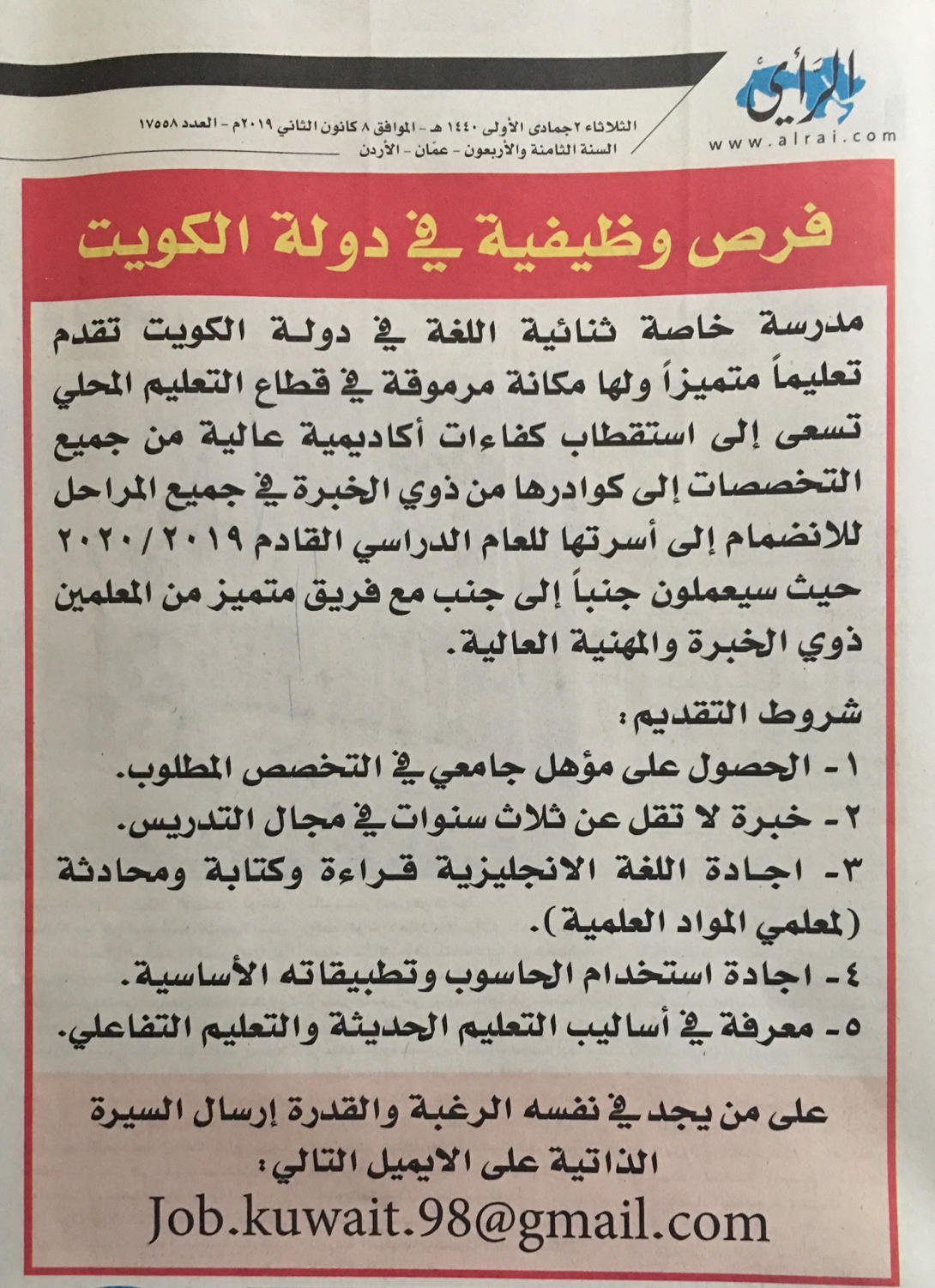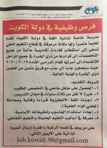 وظائف شاغرة لدى دولة الكويت في مجال التدريس