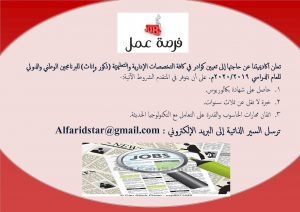 مطلوب كادر كامل تدريسي و مهني ذكور واناث لمدرسة خاصة تصفّح المقالات فرص عمل لحديثي التخرج في مجالات السوشال ميديا و التصميم و العلاقات العامة وظائف شاغرة لدى مطعم سياحي برواتب ثابتة و ضمان و عمولة ومميزات اخرى