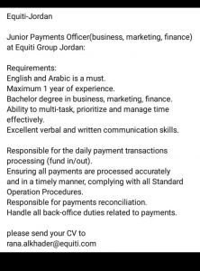 مطلوب لشركة Equiti في مجالات المحاسبة و الادارة و المبيعات – الرواتب عالية تصفّح المقالات وظائف شاغرة لدى منتجع سياحي في البحر الميت وظائف شاغرة لدى حلويات زلاطيمو برواتب مميزة