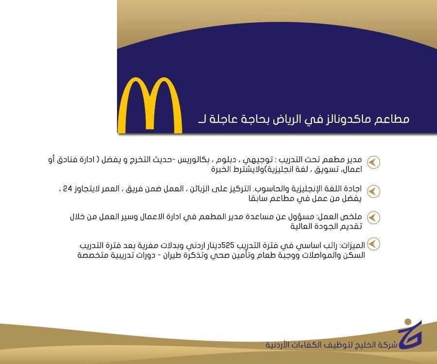وظائف شاغرة لدى ماكونالدز الاردن برواتب مميزة