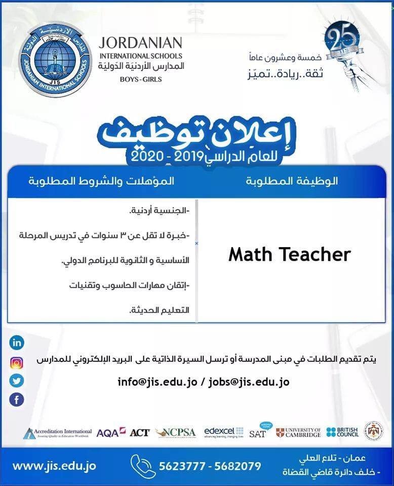 وظائف شاغرة لدى المدارس الاردنية الدولية