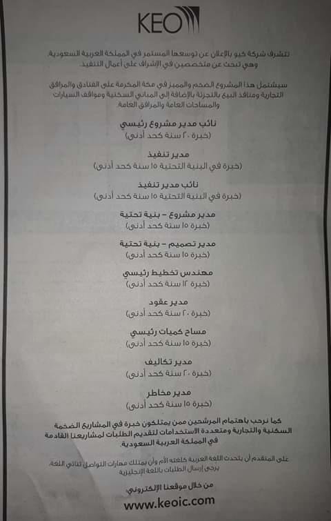 وظائف ادارية و هندسية في السعودية – رواتب عالية – حسب التفاصيل التالية : تصفّح المقالات فرص عمل مميزة – سارعو بالتقديم لدى شركة كبرى في مجالات الادارة و الهندسة بخبرة او بدون مطلوب موظفين و موظفات كول سنتر – راتب 300 د + عمولات