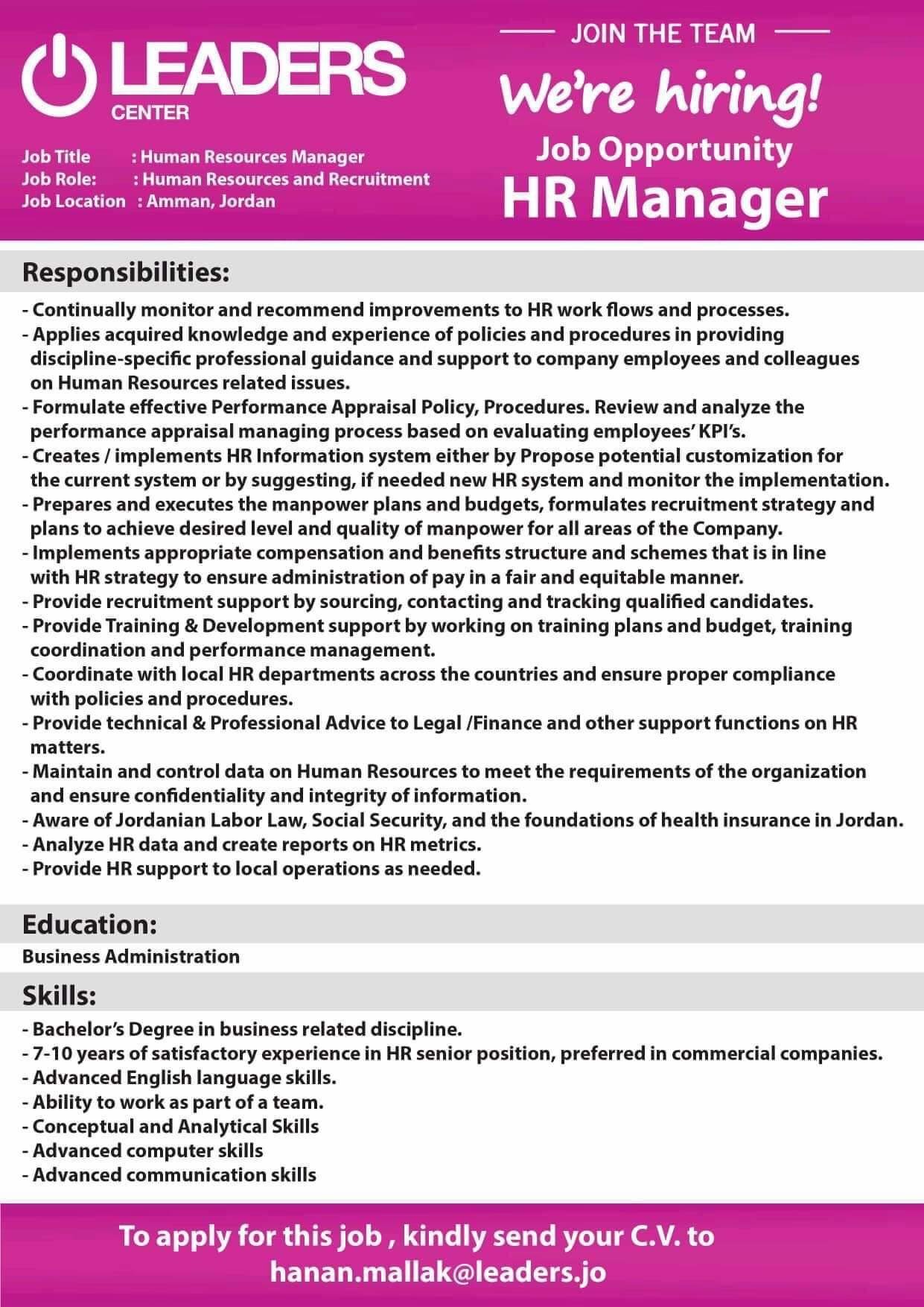 فرص عمل مميزة و راتب عالي لشركة LEADERS تصفّح المقالات مطلوب للتوظيف في مجال الموارد البشرية و الادارة لشركة رائدة وظائف شاغرة في قسم الادارة لشركة STS