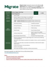Migrate Jordan is pleased to announce the following Job Opportunity that is available for one of its Clients and of whom operate in the field of Branding & Marketing and of which details are shown below: Interested candidates can submit their CVs to our Recruitment Center (recruitment@migratemena.com) Notes: – Application Deadline Date is (04/02/2019) – All CVs are to submitted in English – Please to enter the job title and reference number shown above the subject of the email