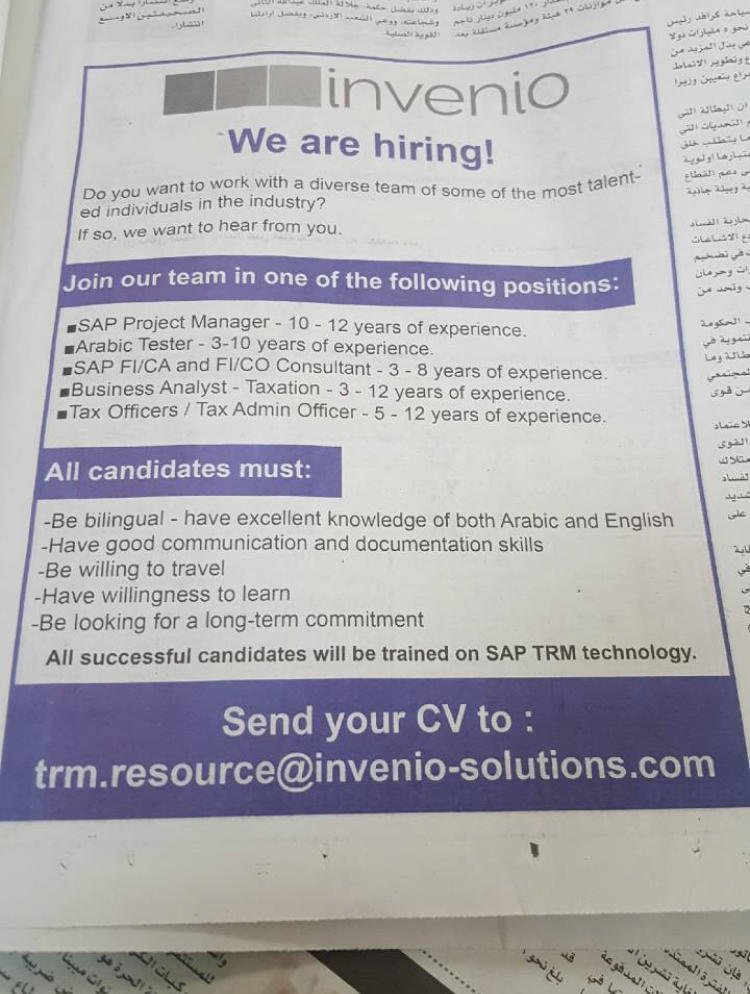 مطلوب موظفين و موظفات لشركة – INVENIO – رواتب عالية و مميزات تصفّح المقالات وظائف شاغرة لدى مؤسسة العمري جامعة العلوم الاسلامية العالمية تعلن عن حاجتها للتخصصات التالية: