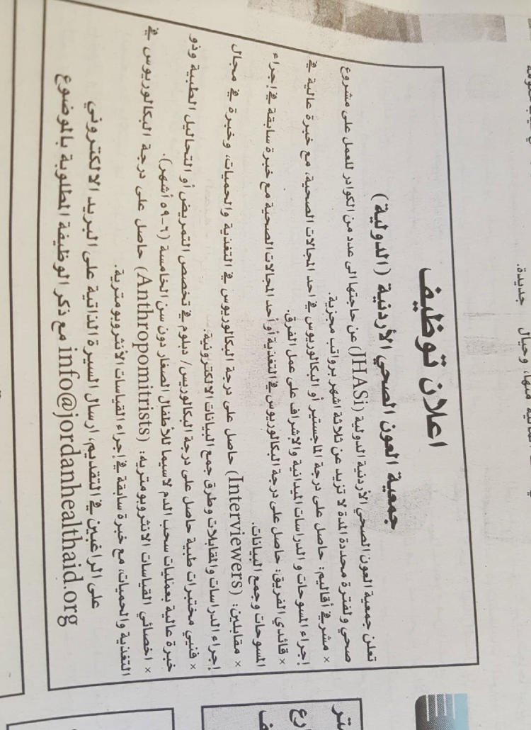 فرص عمل متنوعة للعمل في منظمة jordan health aid