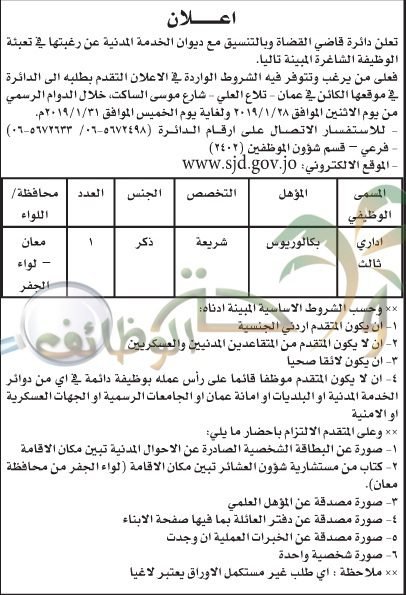 وظائف ادارية شاغرة في دائرة قاضي القضاة
