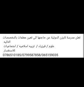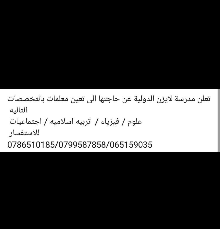 تعلن مدرسة لايزن الدولية عن حاجتها للتخصصات التالية: تصفّح المقالات مطلوب للعمل في مدرسة خاصة في عمان مدرسين من جميع التخصصات المؤهل العلمي – بكالوريوس لا تشترط الخبرة وظائف شاغرة لدى كبرى مدارس الامارات
