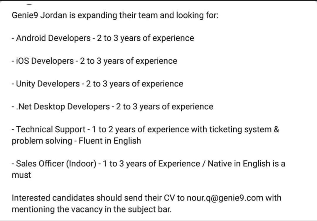 وظائف شاغرة لدى genie9 في مجالات الكمبيوتر و المبيعات والسكرتاريا -بخبرة و بدون خبرة تصفّح المقالات فرص عمل مميزة لدى وكالة رم الاخبارية فرص عمل لدى شركة salam technology في مجالات الكمبيوتر و الهندسة
