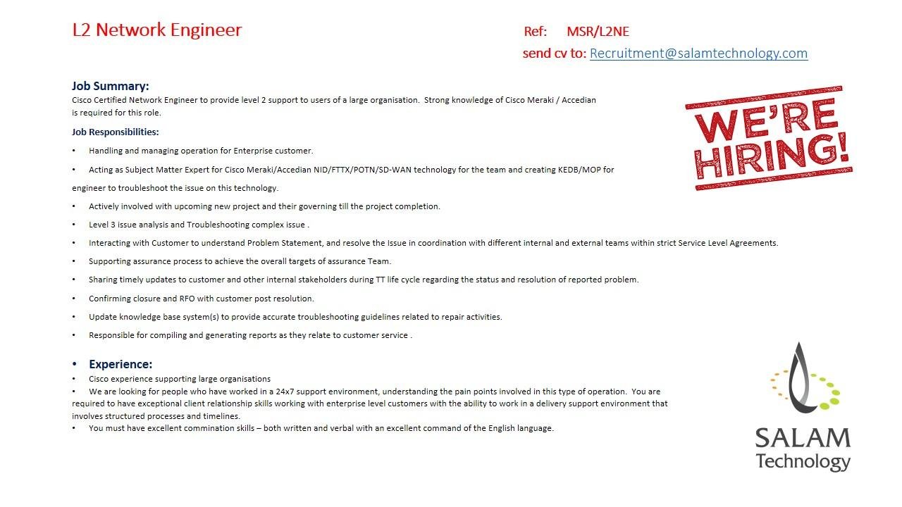 فرص عمل لدى شركة salam technology في مجالات الكمبيوتر و الهندسة
