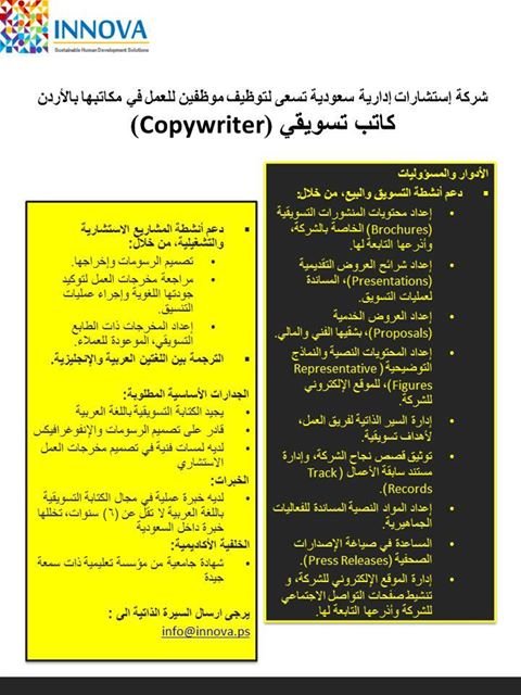 فرص عمل مميزة لدى شركة سعودية مقرّها الاردن تصفّح المقالات وظائف شاغرة لدى كبرى الفنادق في عمّان وظائف شاغرة لدى فندق 5 نجوم برواتب (1200 – 1500 دينار) +عمولات و تأمينات