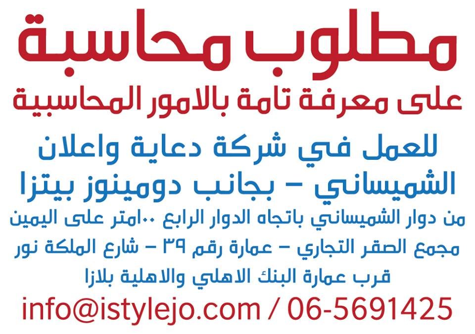 وظائف شاغرة لدى شركة في الشميساني في قسم المحاسبة
