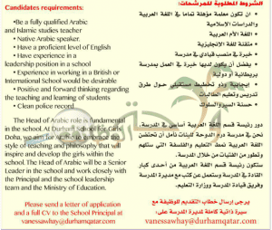 وظئف شاغرة للعممل لدى مدارس في الدوحة قطر