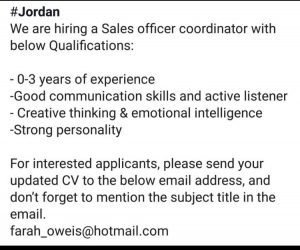 فرص عمل لدى شركة كبرى في مجال المبيعات و الادارة بخبرة او بدون