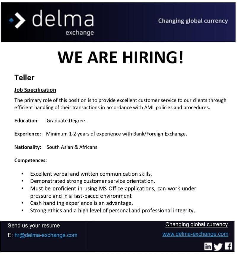 3 thoughts on “وظائف شاغرة لدى شركة صرافة كبرى”