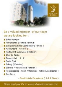 وظائف شاغرة لدى Olive Tree Hotel في الشواغر التالية