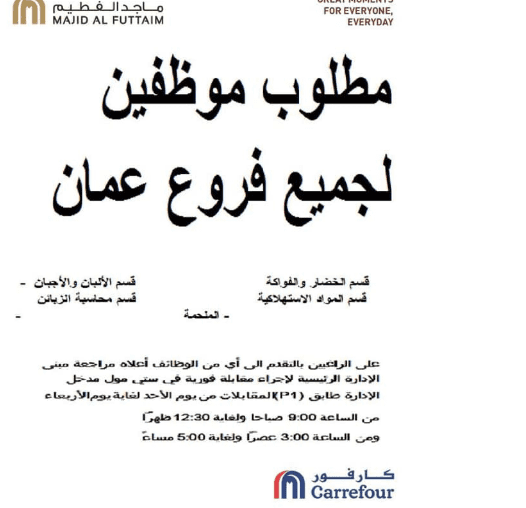 وظائف شاغرة لدى كارفور في اكثر من قسم تصفّح المقالات وظائف شاعرة لدى ارامكس وظائف شاغرة لدى شركة كبرى في التخصصات التالية