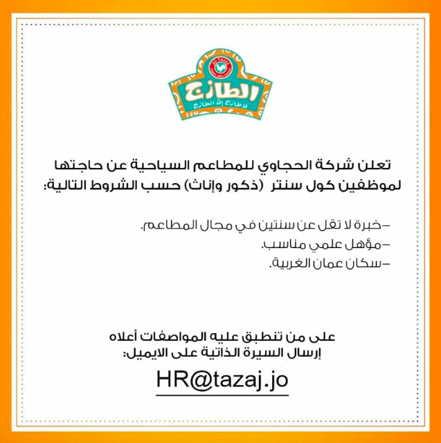وظائف شاغرة لدى مطعم الطازج في وظيفة الكول سنتر من كلا الجنسين تصفّح المقالات وظائف شاغرة لدى فندق جراسا في الاردن في اكثر من شاغر مطلوب موظفين للعمل داخل شركه كبرى في الشميساني التوظيف فوري