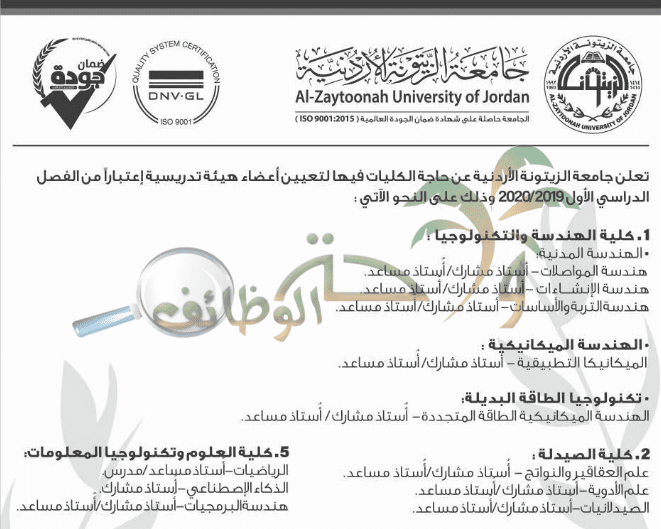 وظائف شاغرة لدى جامعة الزيتونة تصفّح المقالات وظائف شاغرة لدى مدارس السابلة مطلوب مدرسين ومدرسات لمدارس الكلية العلمية الاسلامية