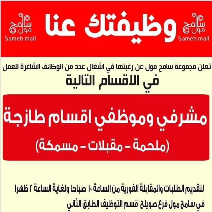 وظائف شاغرة لدى سامح مول والمقابلات فورية