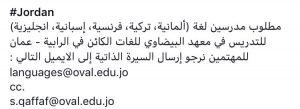 مطلوب لمعهد لغات مدرسين لغات:انجليزية-  المانية -تركية-فرنسية-اسبانية