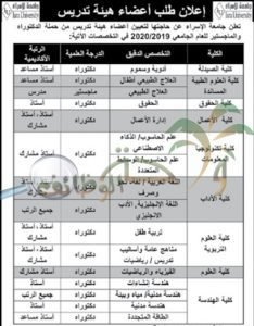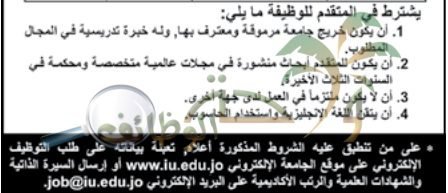 تعلن جامعة الاسراء عن حاجتها الوظائف الشاغرة لحملة الماجستير والدكتواره في التخصصات التالية :