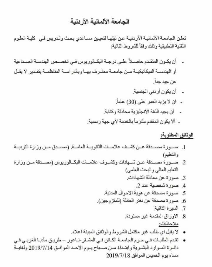 German Jordanian University is looking to hire