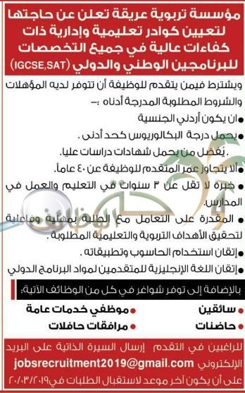 وظائف شاغرة لدى مدرسة حطين الحديثة