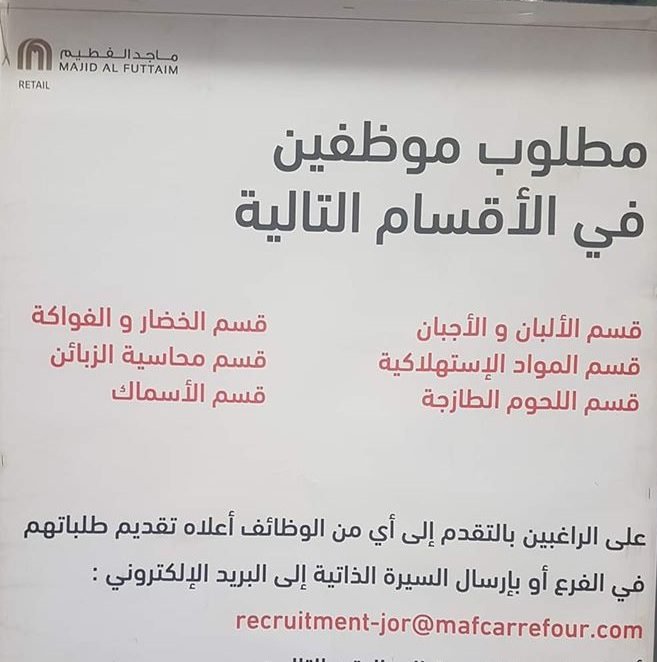 مطلوب موظفين للعمل في جميع اقسام كارفور تصفّح المقالات وظائف شاغرة للعمل لدى مجموعة طلال ابو غزالة وظائف شاغرة لكلا الجنسين براتب 750 دينار في شركة كبرى