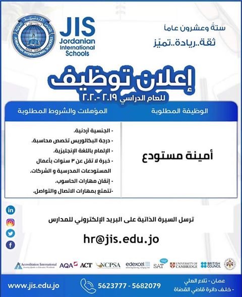 وظائف شاغرة لدى المدارس الاردنية الدولية في قسم المحاسبة