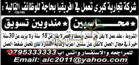 مطلوب محاسبين وموظفين تسويق للعمل في افريقيا رواتب مغرية