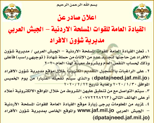 فتح باب التجنيد في الجيش العربي تصفّح المقالات وظائف شاغرة لدى شركة البيبسي الاردن وظائف شاغرة لدى Nestlé الاردن