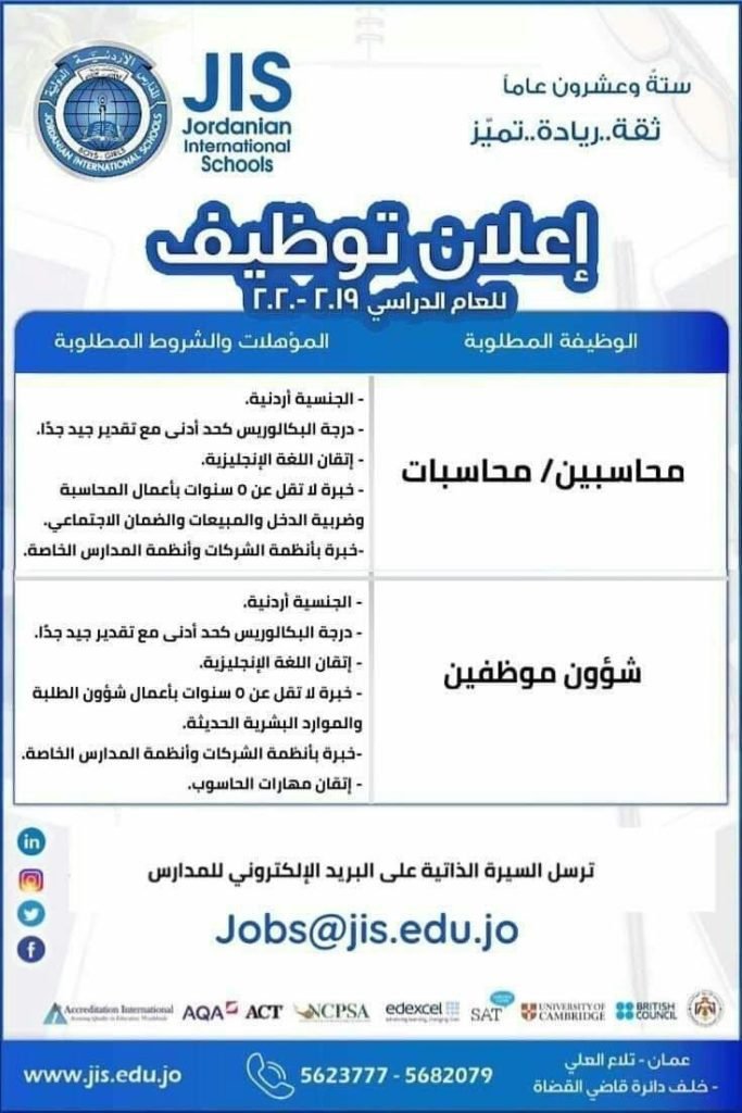وظائف شاغرة لدى المدارس الاردنية الدولية